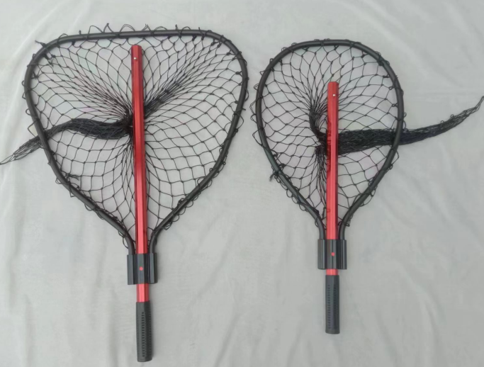 坚固大抄网,不同形状大小的网头可供选择,铝材网框和杆,黑色聚乙烯网兜,结实耐用,伸缩杆,方便携带